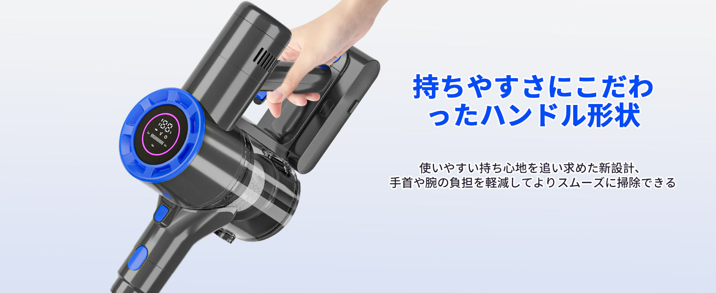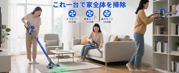 スティック掃除機 コードレスには「エコ」「標準」「強力」の3段階吸引モードが搭載され、ワンタッチで簡単に切替えられ、ゴミの大小と種類によって、自由に選択できます。掃除機 ひとり暮らし用は日本の住宅向けに設計されたクリーナーヘッドを採用し、小回りが利き、ヘッドが床をすべるように動くので、快適に掃除できます。掃除機-はAkiko独自の「グリーンLED」をヘッドに搭載し、正確な角度の光で目に見えないホコリも浮かび上がらせる、細かいゴミまで逃さずに掃除することが可能で、家具の下などの暗い場所を掃除する際に便利です。
