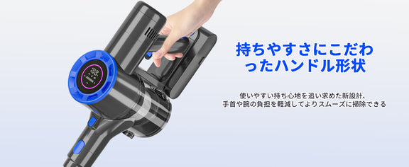 買っ て 良かっ た 掃除機は大画面のタッチ式LEDディスプレイを採用し、バッテリー残量や充電状態・吸引力段階・フィルター詰まり・ヘッドブラシ詰まりが一目瞭然です。数字が大きく表示されて、高齢者にとっても見やすいです。特に電池の残り時間を確認しながら掃除できるのが超便利です。