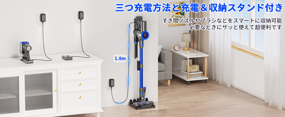 掃除機 スタンドは業界革新的な自立設計を採用し、掃除を中断することが多い場合、自立したりフックや滑り止めで立てかけたりできるので倒れる心配をせずに済みます。また、掃除機 一人暮らし コードレスは特許技術を取得している付属品収納スタンドが付いており、コンパクトで動かしやすいため、サッと取り出して掃除しやすいうえに、収納場所を取りにくいので、段差のある部屋や広い室内を掃除するときにも活躍します。掃除機 下取りありはお部屋の雰囲気を邪魔せず自然にお部屋に置いておけるので、部屋に馴染みやすいデザインが魅力です。