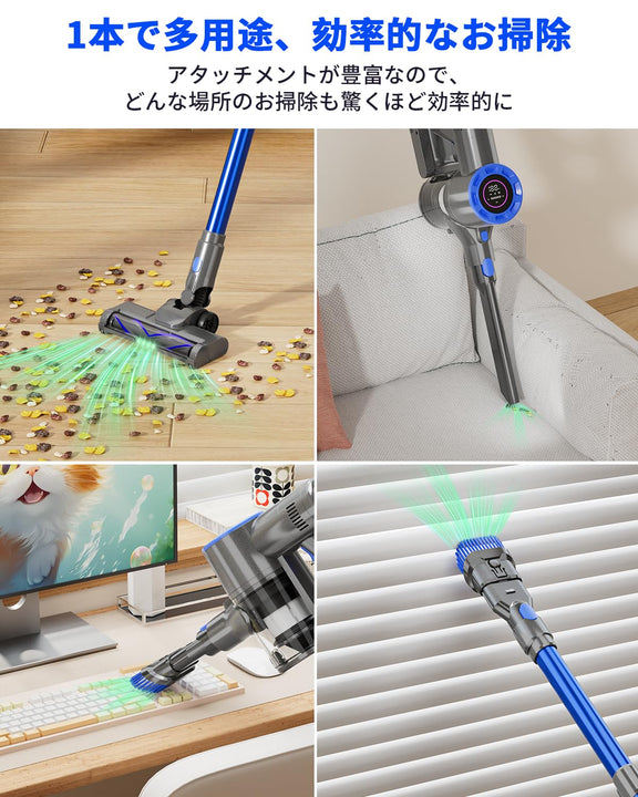 掃除機 コードレス 専用スタント付き 革新版650W 50kPa 超強力吸引 掃除機 ハンディ軽量 直立式 静音 LCDタッチディスプレイ お手入れ簡単 HEPA多重濾過 3段吸引力 スティック着脱式バッテリー LEDライト 車載用 家庭用 PSE認証済 日本語取扱説明書